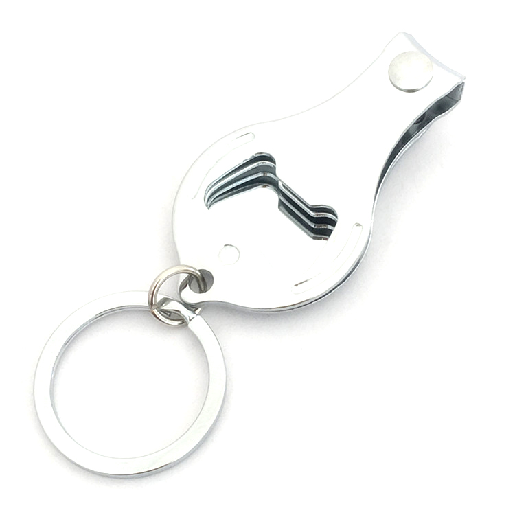 The 4 in 1 multi function nail clipper is equipped with key ring. It functions as nail clipper, nail file and bottle opener. This nail clipper is made of high quality carbon steel blade and zinc alloy lever. It can cut off thick nails easily, last for several years. Use the nail file to smooth the cut nails and a very useful and beauty maker. Bring it everywhere with the keychain and use it wherever need it. The bottle opener can help you open beer and other beverage easily. Great gift for family and friends. 2.6" L x 1.34" W