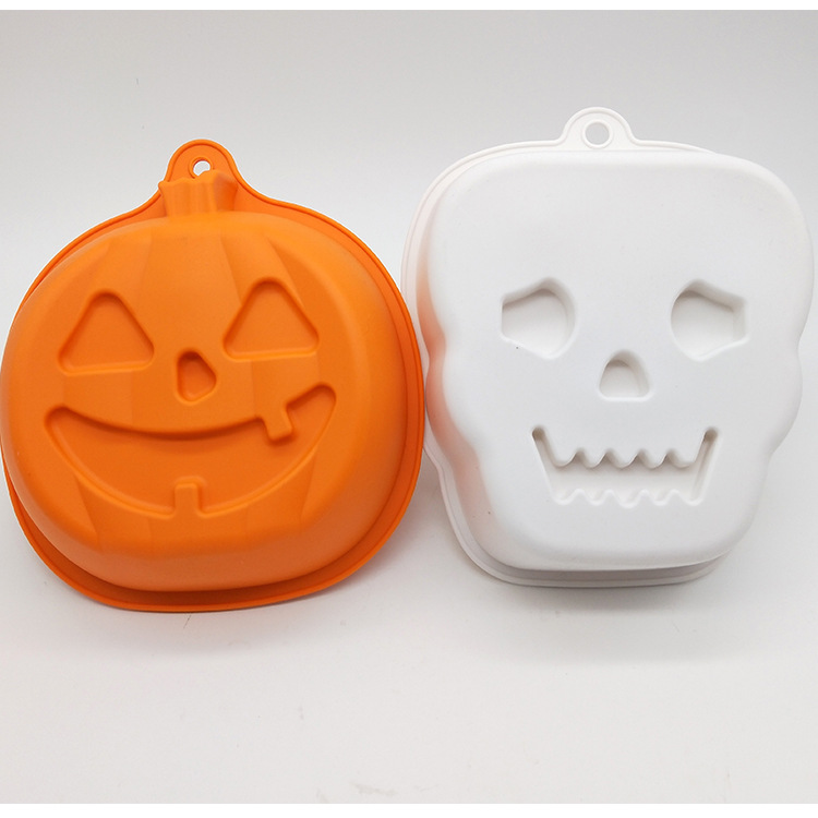 Silicone baking mold was made of top-quality platinum silicone material that is food grade, FDA approved. Non-toxic silicone molds also features eco-friendly, durable, and flexible at the mean time. Halloween silicone baking mold is safe from -40℉ to 450 ℉. Worry free to use in freezer, oven, microwave oven. Pumpkin and skull shape optional. Perfect bake tool to make cakes, pizza, bread, mousse, jelly, conditioning food, chocolate, pudding, fruit pie and so on.Colors:Orange, White.Size:7.05"*7.85"*2.156".