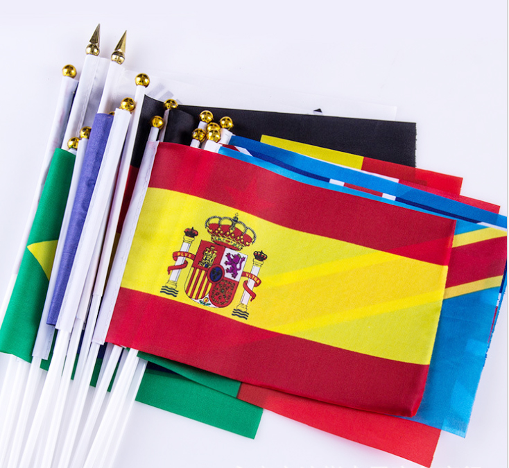 The mini hand held flag is made from polyester fabric and plastic stick. These are great-looking flags which is much nicer than the cheap-looking all-plastic variety. The custom printed flags is great choice to hand out at events, to supply whole organizations and groups, to decorate large halls, etc.